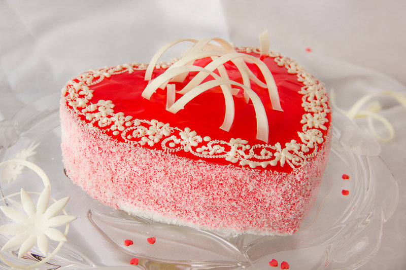 Белые бисквитные коржи пропитаны сахарным сиропом. Крем из взбитых сливок с кусочками консервированных ананасов. Оформление – яркий и аппетитный клубничный гель с белым шоколадом.